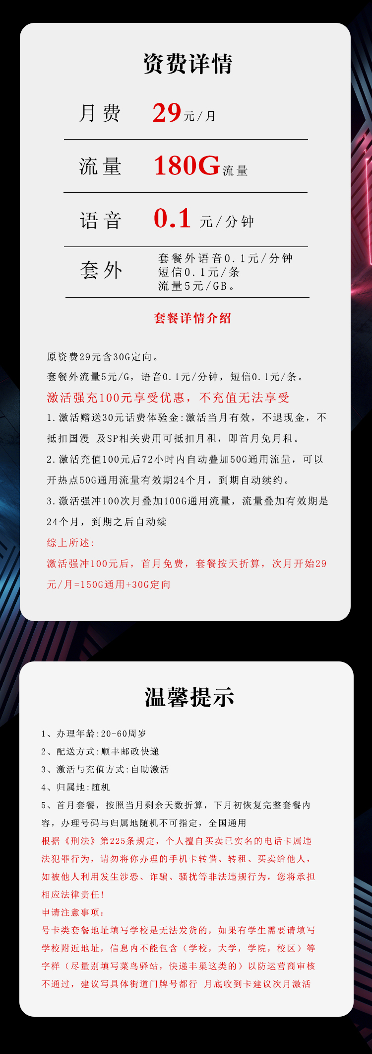 3. 首充:首次充值需按规则在指定链接或快递小哥处完成,才能享受优惠月租。
